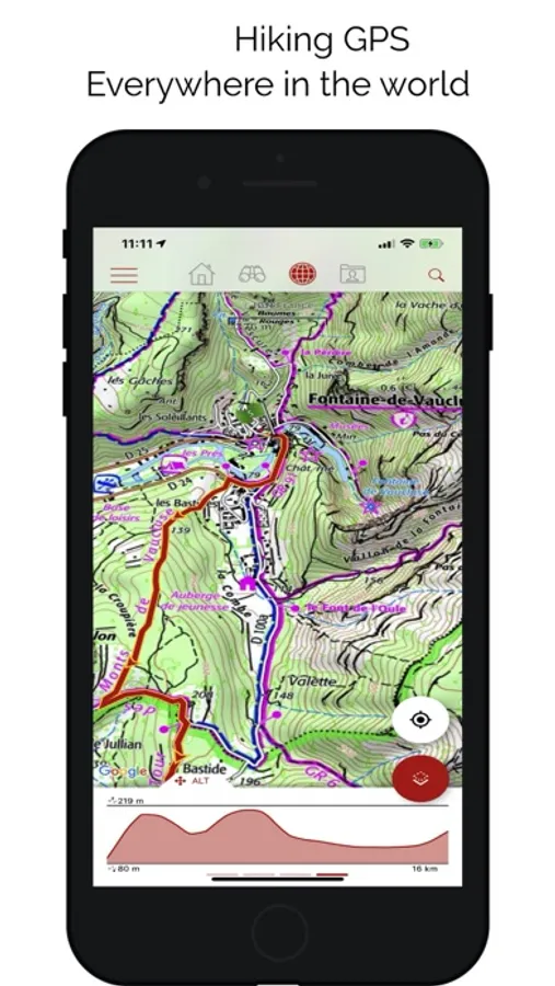• Add topographic maps of your choice, from IGN France, IGN / NGI Belgium, IGN Spain, swisstopo, Austria, USA (USGS topographic mapping), Canada (Toporama).