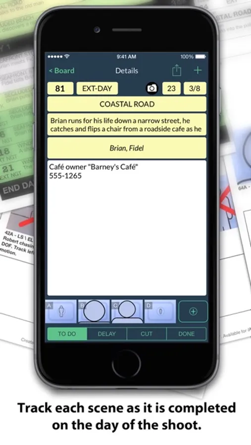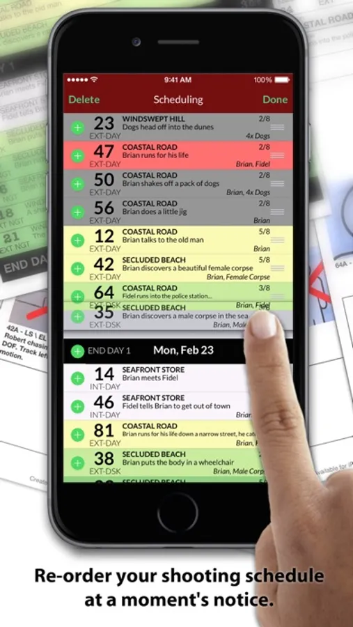 • Add, edit, delete or re-order scenes across multiple shooting days, right on your mobile device.