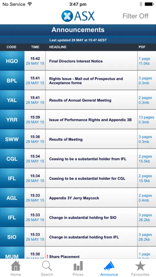 The official ASX iPhone app is easy-to-use and provides you with real-time company announcements, indices and delayed equity share prices. You can also receive real time alerts for announcements released by your 20 favourite companies.
