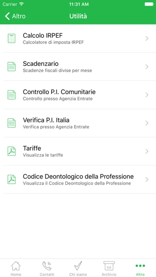 Sono disponibili molte funzioni di utilità come lo scadenziario fiscale collegato all'Agenzia delle Entrate, un comodo database con l'elenco degli uffici pubblici di maggior interesse dell’area geografica di riferimento nonchè una sezione per poter calcolare l'imposta sul reddito delle persone fisiche (IRPEF). I clienti potranno anche, tramite username e password, accedere direttamente da iPhone o iPad alle proprie dichiarazioni dei redditi e ai propri bilanci, in formato PDF.
