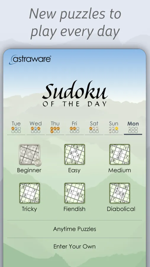 * 6 competitive puzzles each day ranging from Beginner difficulty through to Diabolical