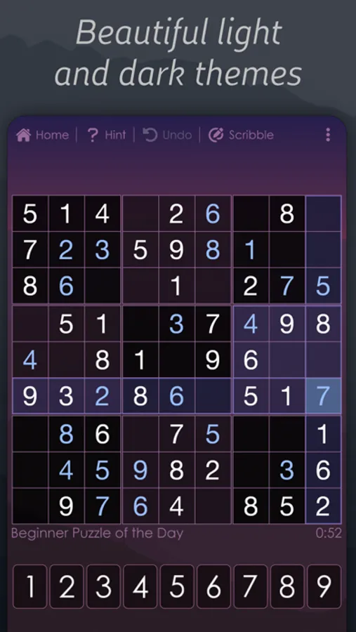 * Hold & Highlight - tap and hold a specific number or pencilmark on the number bar below the puzzle to see all instances of the number in the grid.
