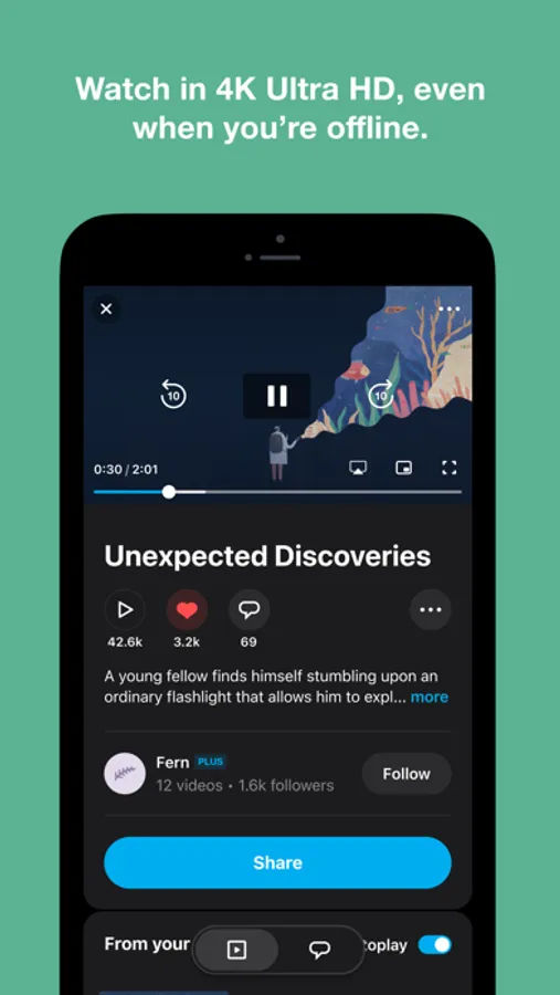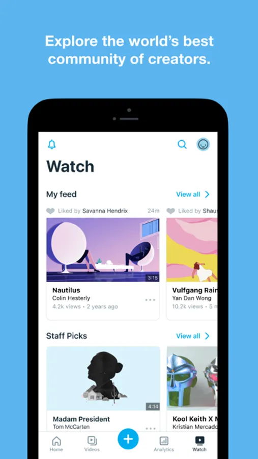 Upload gorgeous, ad-free videos in 4K Ultra HD with Dolby Vision HDR, follow the world’s best creators, and discover amazing videos each and every day. No time to watch? Save videos for offline viewing. Wanna share on the go? Upload videos in the highest quality possible, right from your iPhone or iPad.