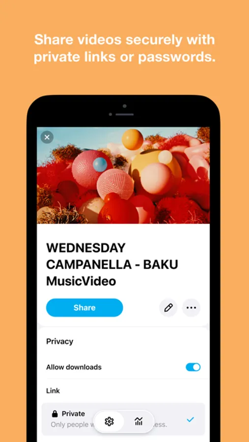 • Privately share videos with passwords and private links