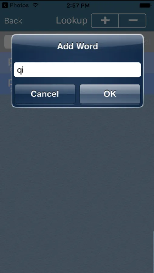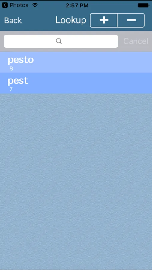 You may perform some advanced searches on the Lookup screen using 'wildcard' characters. So, similar to the way we used the underscore (_) character on the Home Screen to be a placeholder for any single character, you could enter 'f_z' in the Search field and click Search and the words 'fez' and 'fiz' will be returned. In effect, your wildcard search requested any three letter word starting with 'f' and ending with 'z'.