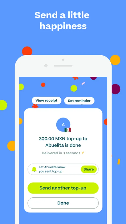 We'll do the rest; it really is that simple. In 3 seconds, the top-up will be delivered