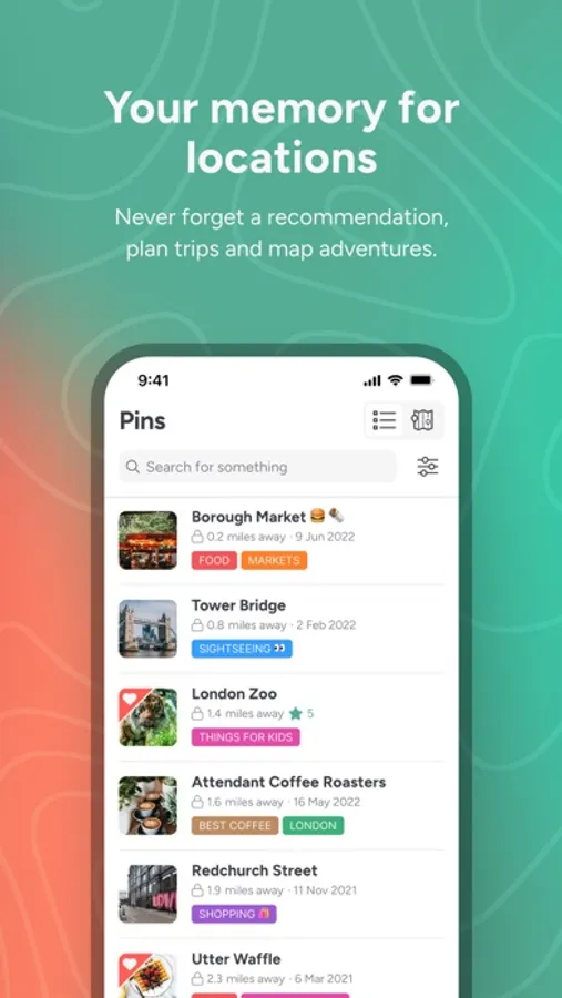 Pin Drop is a free app that helps you remember and organise places you've been, want to go, and plan trips. Import from Google Maps, What3words, Apple Maps, Mapstr, Foursquare and more to super-charge your content with Pin Drop. Your maps are fully encrypted and only viewable to you, unless you choose to share them with friends, family or colleagues.