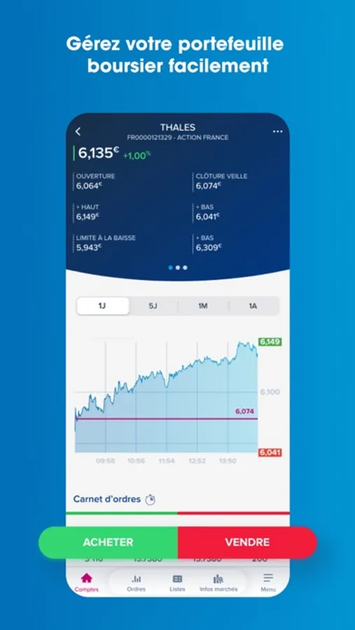 - Passez des ordres de bourse de 8h à 22h depuis votre mobile