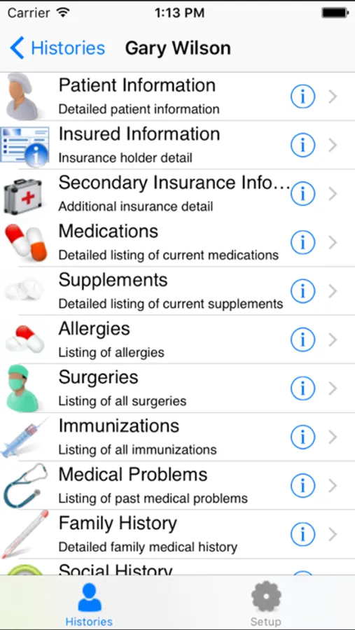 Maintain family medical histories including insurance, secondary insurance, medications, supplements, surgeries, immunizations, allergies, medical issues, important phone numbers, family and social histories.