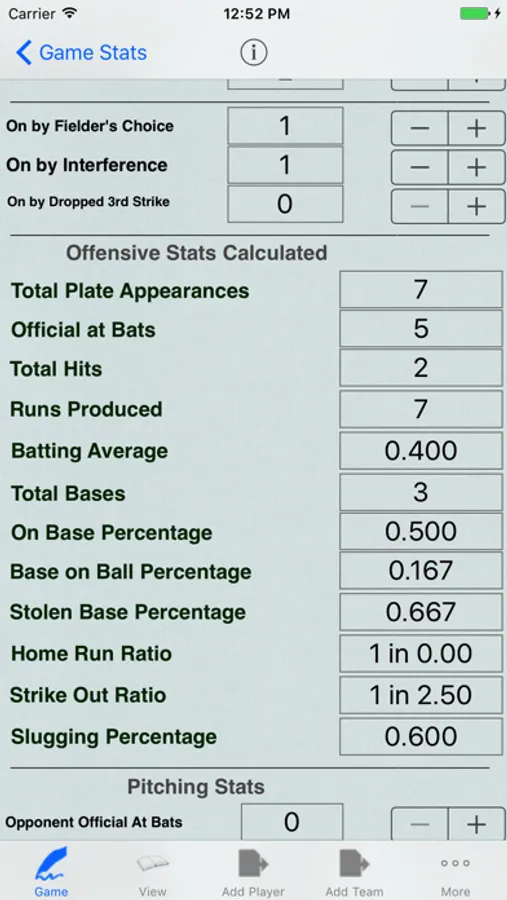 The Baseball Stats is a very helpful app to get a handle on statistics and track an individual player during practices and competitions. First add the home team's name then add the opponent's team name. Type in the game's name and you are ready to start adding up the stats. From there you can save/email an unlimited number of games.