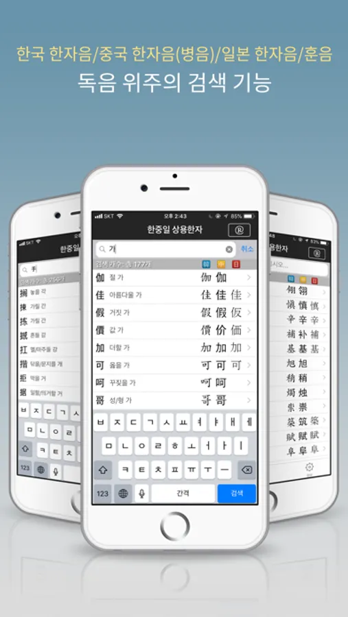 한글 독음 검색, 중국어 병음, 일본어 훈음 검색을 제공하여 쉽고 편리하게 한자 학습이 가능합니다.