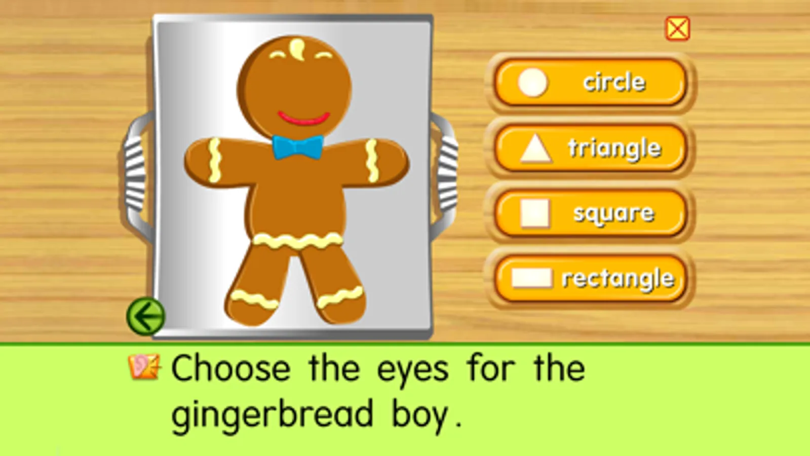 The Starfall Gingerbread app is a delicious way to learn 2D and 3D shapes. Children choose a girl or boy cookie, then decorate it with shapes and colors. In this App edition, create a tray of gingerbread cookies, then choose a favorite cookie to run through a maze following shapes or shape patterns. Run the maze again and again, it’s different every time!