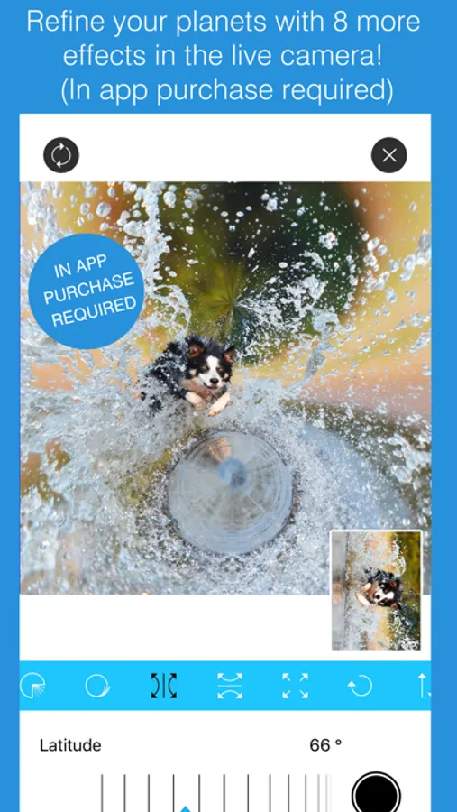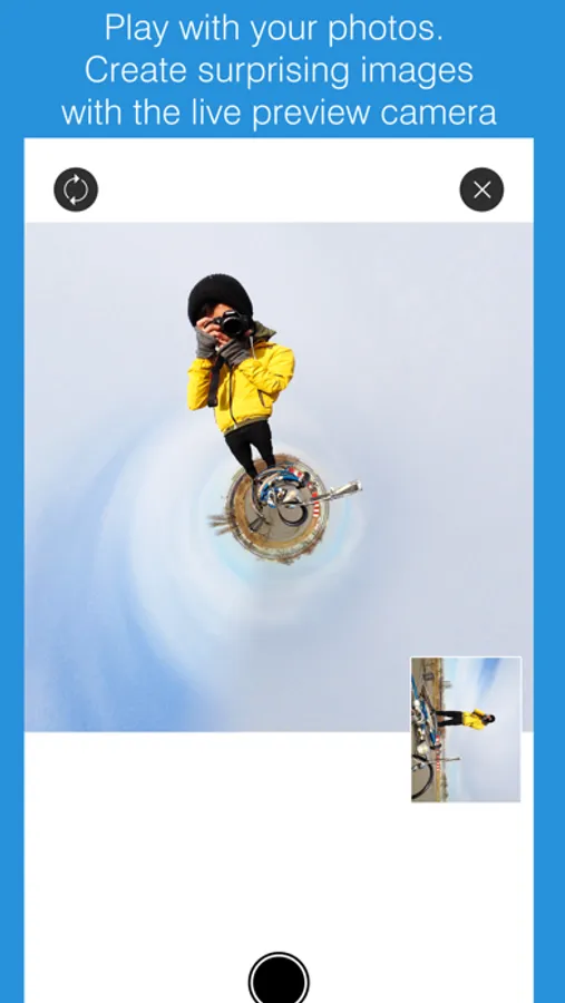 • Use the in-app camera with a live preview of your Tiny Planet!