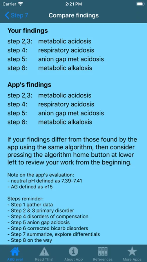 - the app facilitates you to evaluate the data. If you make a mistake, the app will not argue with you. It will, at the end, offer to compare your work to the disorders that the app finds using the same algorithm
