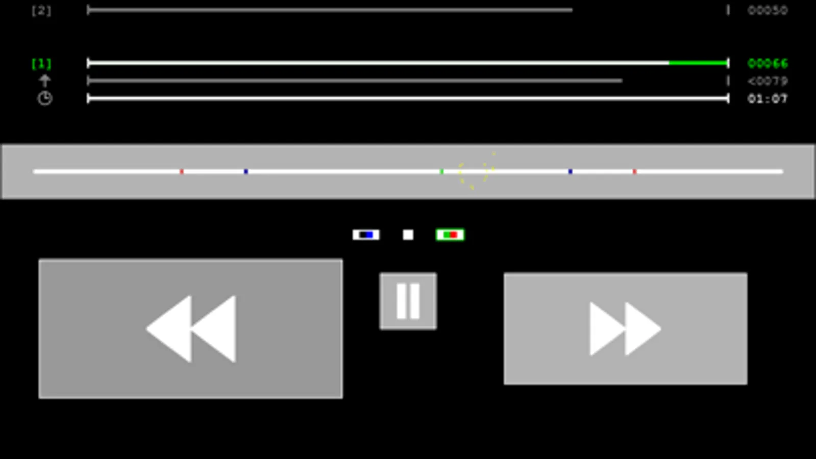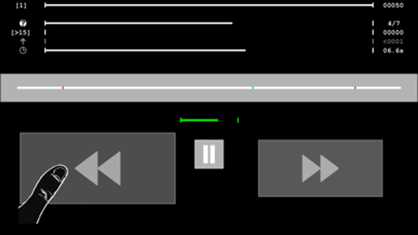 In 1D (One Dimension, like 2D and 3D) pulses are coming from each side in a one-dimensional world and it is up to you to cancel them out as you move back and forth. When the avatar is black it can cancel blue pulses and when it is green it can cancel red pulses. With using only one dimension, and two buttons, 1D is a simple and fun game, which is also surprisingly complex.