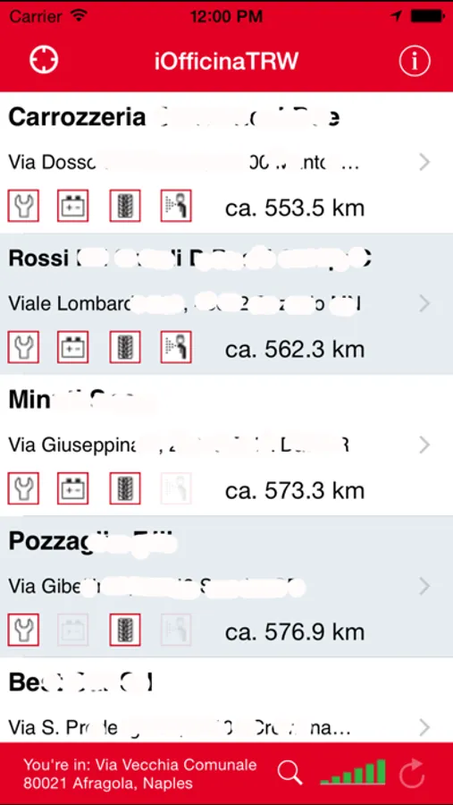 L'applicazione iOfficina TRW AUTOSERVICE ti consente di individuare facilmente l'officina più vicina a te e così potrai con facilità :