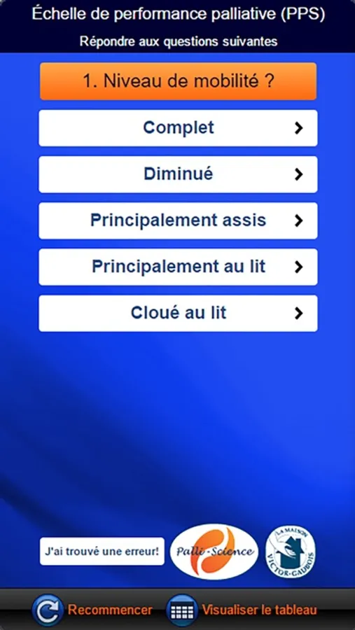 Échelle PPS (Palliative Performance Score) sur iPhone et iPad