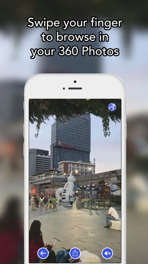 Watch your 360 photos by simply swiping your finger on it, or by using your device gyroscope and turning around. And it works in both landscape and portrait!