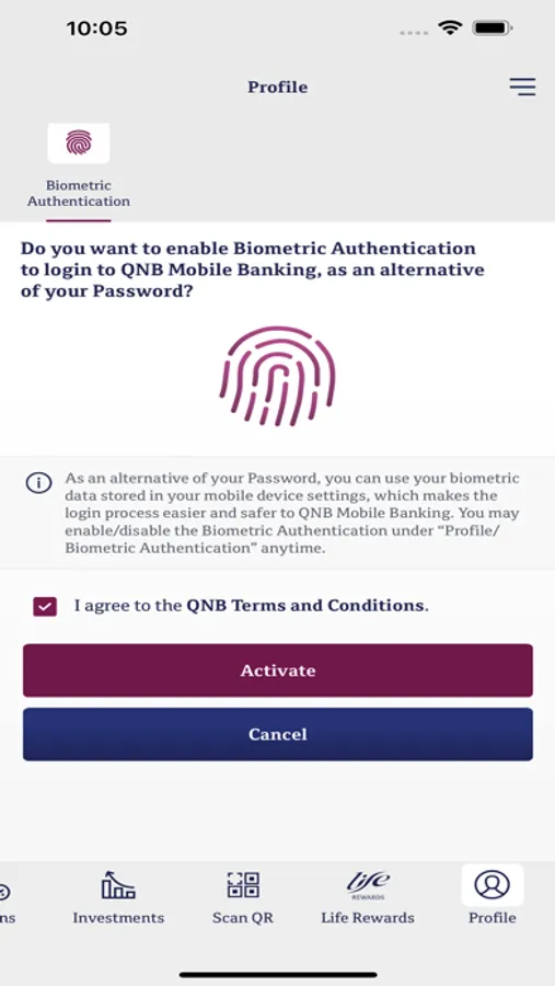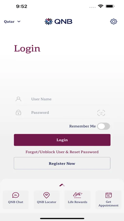 You can login with your QNB Mobile and Internet Banking user name and password, or if you forgot your credentials, you can securely reset through the App. If you have not registered yet, you can simply register selecting Register Now. If you are not yet a QNB customer, you still can enjoy many of our services.