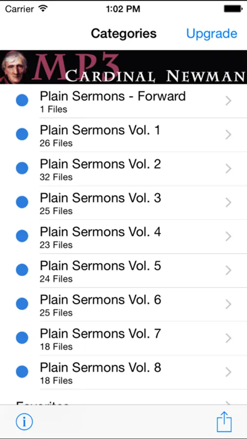 Audio collection of almost 200 sermons of the recently beatified Catholic convert, John Henry Cardinal Newman, on Scripture themes, Feast Days, and many subjects having to do with the human experience, Church teaching, and spiritual growth. This is an audio version of his famous work, "Parochial and Plain Sermons". Will work on your iPad as well as your iPhone (see instructions below).