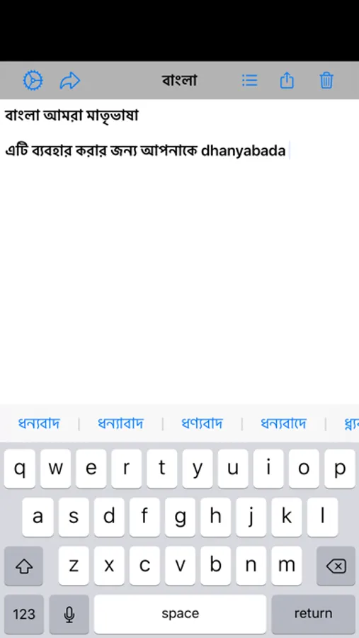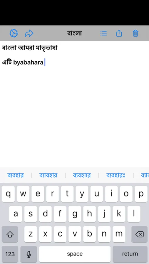 Using the Bangla application users can write text in Bangla script and share it on social media, email or text.