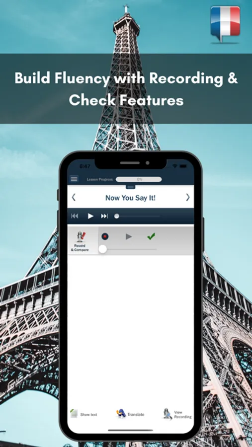 All the content is stored in the app so that you have great responsiveness when you are ready to learn a language. You do not need to be connected to Wi-Fi or 3G networks to run the app. With Hello-Hello French you will be able to do the lessons and practice vocabulary anytime, anywhere developing all the skills you need to communicate in a foreign language. All lessons were recorded by native speakers so you can learn the correct pronunciation.