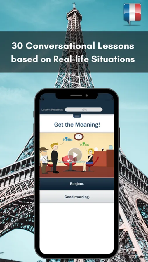 French – Learn French (Hello-Hello) "for iPhone" is a full-fledged language course with 30 LESSONS developed in collaboration with the American Council on the Teaching of Foreign Languages (ACTFL), so you can be assured that these lessons follow an effective research-based methodology. All lessons are conversational based on realistic dialogues and situations, rather than a collection of out-of-context words and phrases.