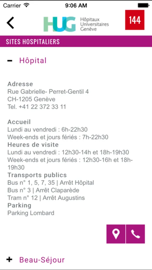 Avec SmartHUG, retrouvez les Hôpitaux universitaires de Genève sur votre mobile pour: