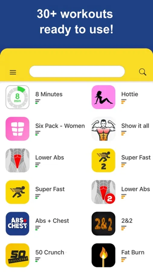 • Unlocking of all Abs exercises to train all areas of your abdomen: lower Abs, other abdomen