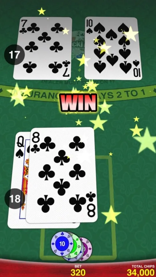 NOTE: Blackjack 88 has free chips to start you off. If you run out you'll get more chips, completely FREE, 20 minutes later. You can optionally buy larger amounts of chips anytime. But, it is possible to play completely free forever!