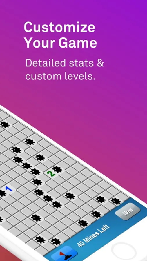 - Unlimited Minesweeper games with three different difficulty settings and a custom mode