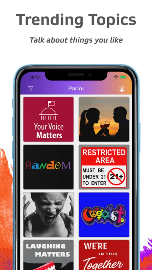 Parlor connects people who want to talk right now. It doesn’t matter if you are 17 or 55. Parlor has topics and users from every age all around the world! Parlor is also the absolutely simplest app to use. Simply pick your topic and within seconds you will get connected to another user in real-time. There are always tens of thousands of users talking on Parlor, so you’re guaranteed to meet new people every time you open the app.