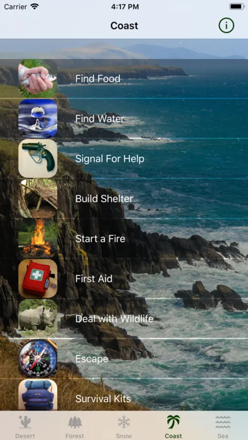 * Choose your terrain (Desert, Snow, Forest, Coast, At Sea)