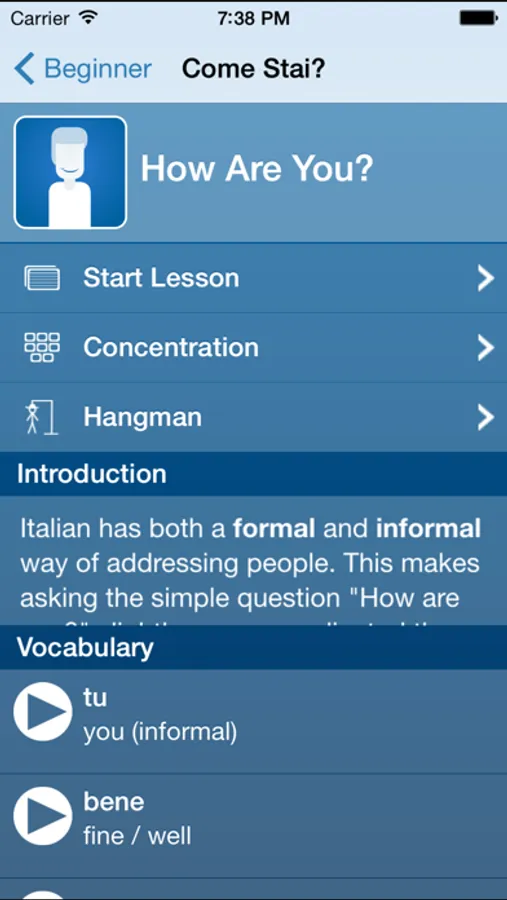 MOLTO BENE ® is the award-winning app that makes learning Italian simple and fun! Quickly learn essential vocabulary, phrases, and grammar concepts.