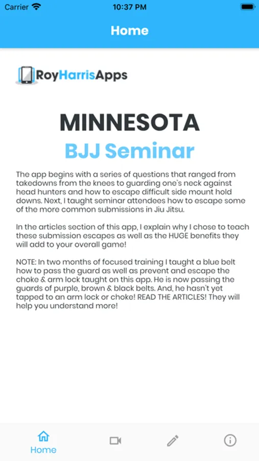 This informative app will teach you how to escape from vulnerable positions as well as some of the more common submissions. It will also teach you how to guard your neck against the large, strong, and aggressive head hunters at your academy!