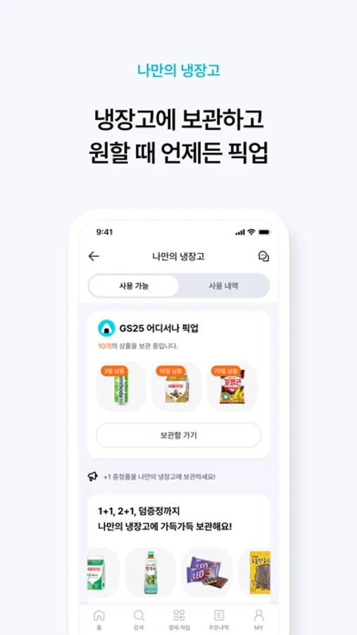 GS25, GS THE FRESH 관련 픽업 상품을 보관하고, 원하는 때에 찾아갈 수 있습니다.