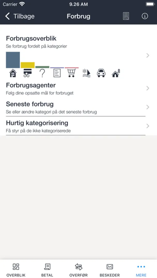 - Få detaljeret indblik i dit forbrug fordelt på kategorier via forbrugsoverblik