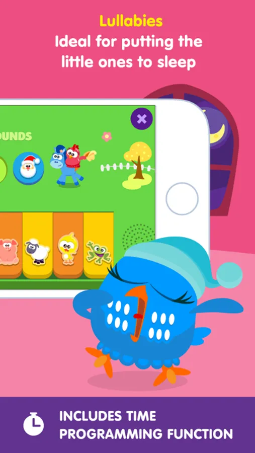 When it's time to sleep, lullabies will help your little one drift off. Set the timer and then let the songs work their magic. Music gently fades away when the time is up.
