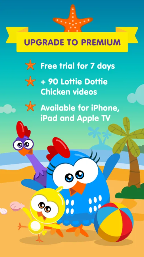 • Lottie Dottie Chicken Official app has a subscription service that offers full and unlimited access to the app's videos, episodes, activities, seasons and any new updates!