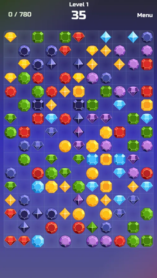 Colored gemstones appear randomly. When gemstones can be connected across the same line, you can eliminate them.