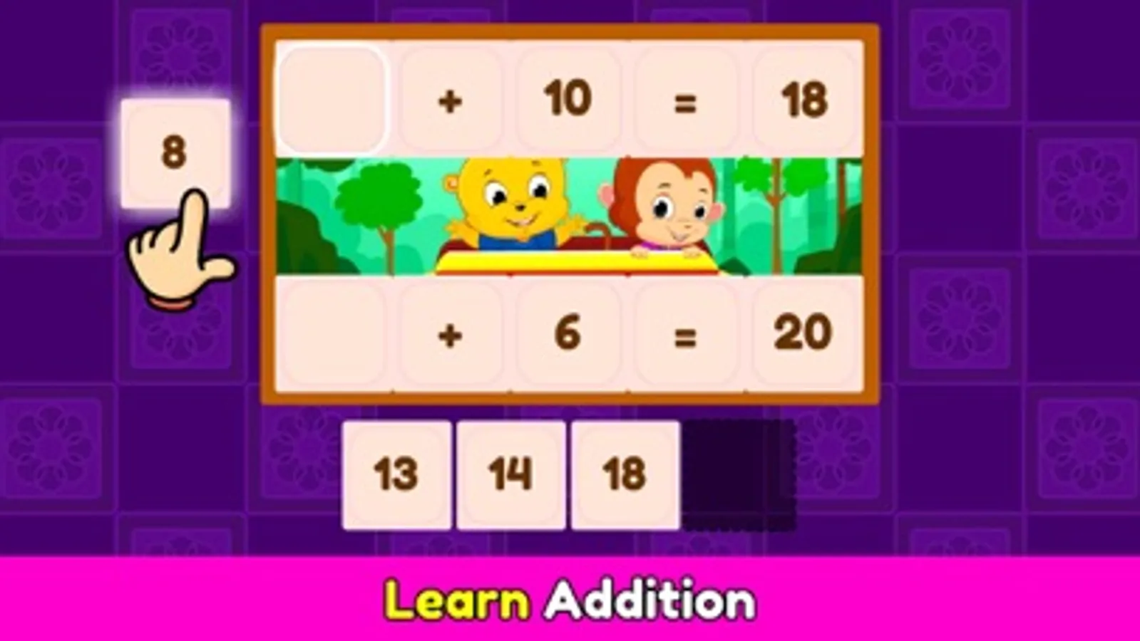 KidloLand Addition & Subtraction is an ideal app for first-grade kids to learn addition and subtraction easily. Kids aged 4-8 years can learn to add and subtract by playing 350+ fun games! KidloLand Addition & Subtraction is the perfect companion for first-grade students to learn math.