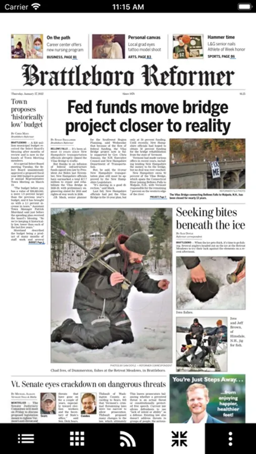 Introducing the Brattleboro Reformer Newspaper App for iOS devices. This App provides access for readers of the eEdition to an exact replica of the printed Brattleboro Reformer newspaper on an iOS device. Using the touch/gesture iOS interface, readers can easily navigate all the sections, articles, photos and advertisements exactly as they appear in the print edition.