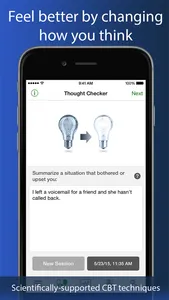 Thought Checker helps you to manage negative feelings related to a specific situation by identifying and modifying the thoughts that contribute to those feelings. Through repeated use, it will help you learn to change your feelings (or change the intensity of your feelings) by changing how you think!