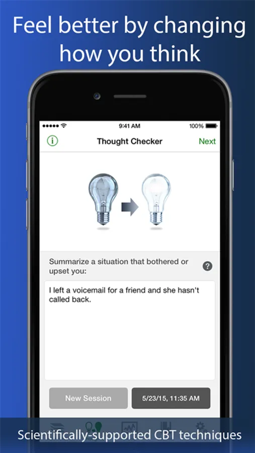 "Whether you have trouble managing stress, depression, anxiety or other moods, this feature-rich app offers tools to help. Use it every day for a month and see how it can help you make your life better." --Christine Padesky, Ph.D., Co-author of Mind Over Mood, Distinguished Founding Fellow of the Academy of Cognitive Therapy