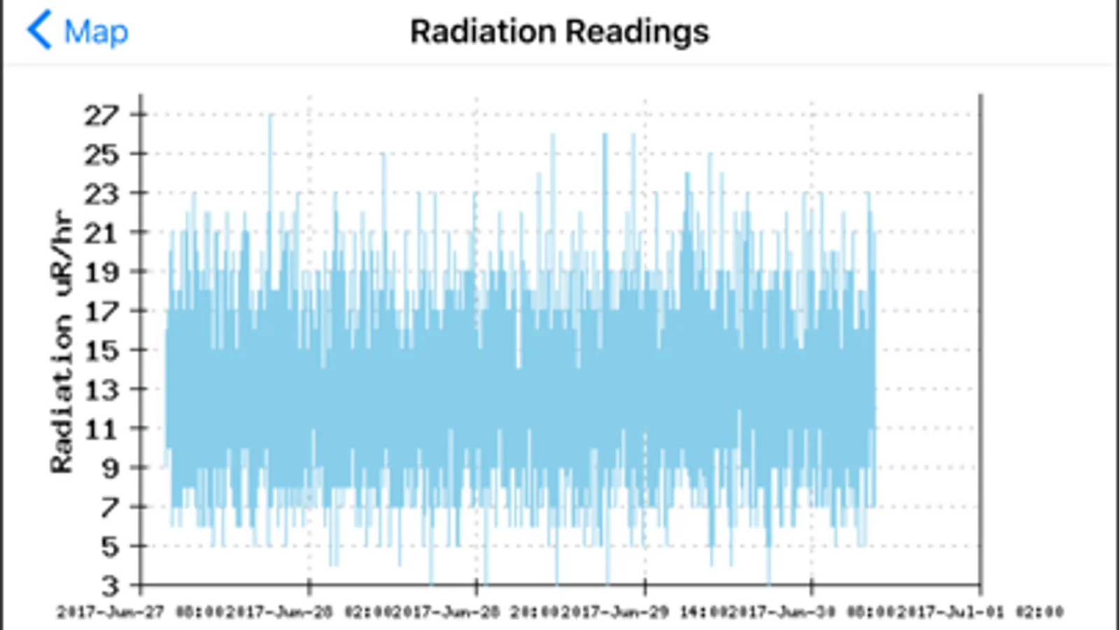 Radiation Map Tracker connects to our extensive network of constantly updating, real time, nuclear radiation detectors, all run by volunteers, not government agencies. This app lets you determine what levels of radiation are being reported at various locations around the world. You can scroll around the map and zoom in on readings. Readings are continuously updated every few minutes.