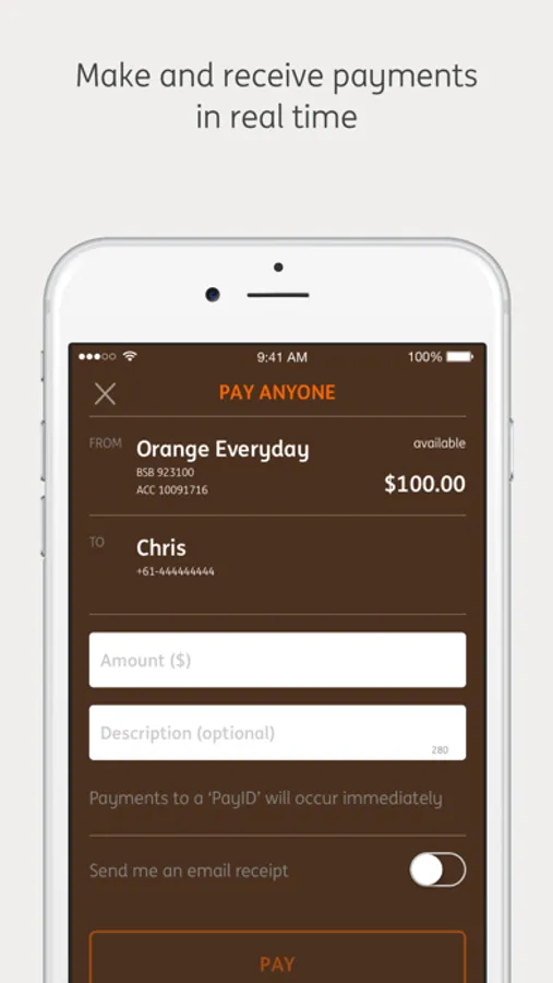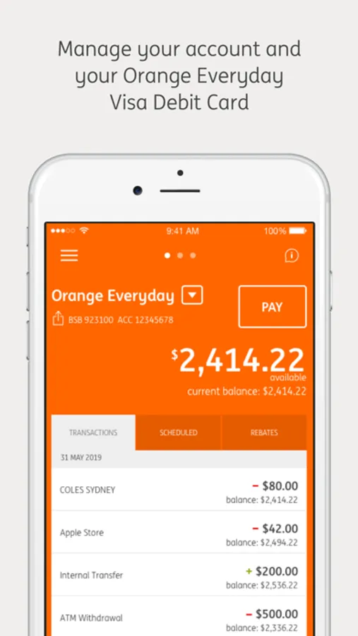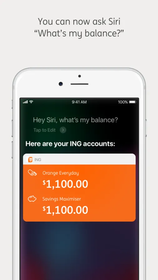 Normal data charges apply. Please check with your mobile phone service provider for details. iPhone and iPod Touch are trademarks of Apple Inc., registered in the U.S. and other countries. Using your mobile to bank with ING ~is subject to certain limitations as not all internet banking features are available. ING is a business name of ING Bank (Australia) Limited ABN 24 000 893 292 AFSL 229823. Australian Credit Licence 229823.