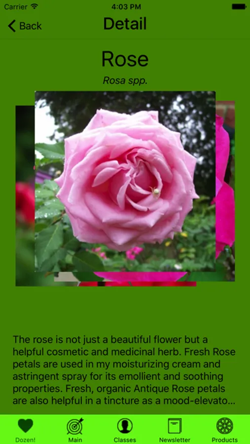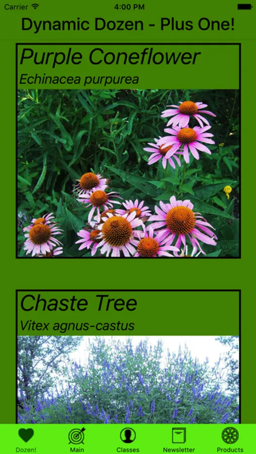 This app includes pictures of Ellen’s Dynamic Dozen! - Plus One. These are twelve herbs, plus the beautiful Rose, that can improve your life. Enjoy the pictures and start your journey with the brief description of each of these beneficial plants.