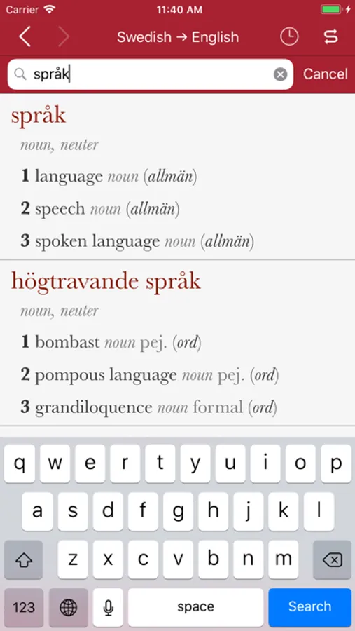 Use this app on iPhone or iPad to access thousands of common Swedish and English translations, and listen to more than 800 words and phrases recorded by native speakers, with no internet connection required.