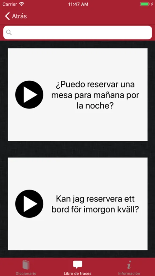 Use this app on iPhone or iPad to access thousands of common Swedish and Spanish translations, and listen to more than 800 words and phrases recorded by native speakers, with no internet connection required.