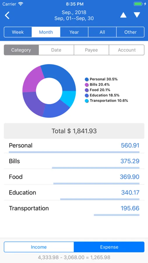 MoneyBook will quickly and easily record each expense. It’s easy to see how much money you have spent every week and even how much money you have spent this year.